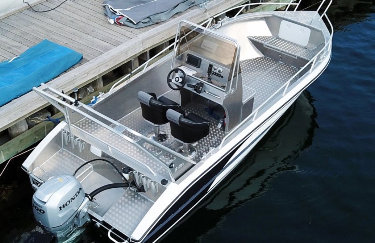 Boat included: New for 05-2025, new robust aluminum boat GEMI 630 CC, 21 feet, 80 hp.
