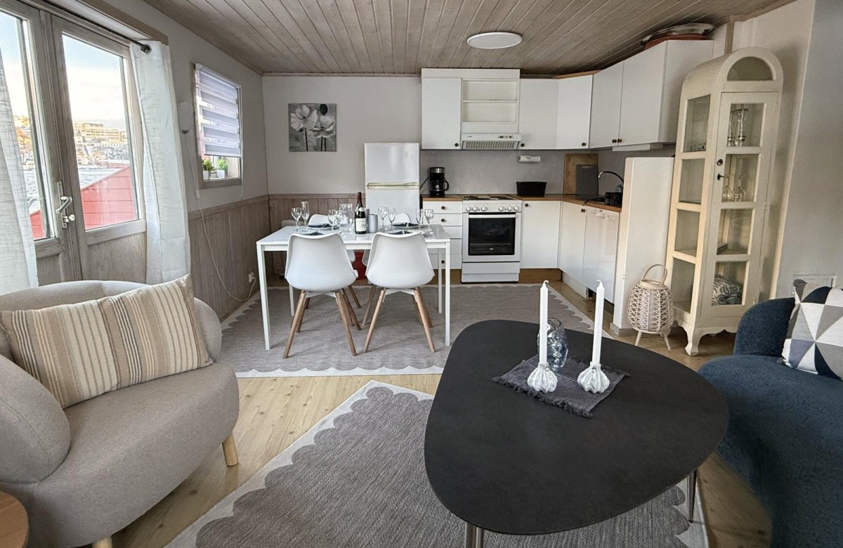 Welcome to Ramsland Brygge 6 A, your charming semi-detached house in an attractive fjord location – directly on the shore of the sheltered Ramslandsvågen inlet, just a stone's throw from the open sea off Lindesnes. Here you'll find a well-maintained and affordable holiday home, particularly popular with anglers and families. Experience your holiday at Norway's sunny southernmost point – with views of the fjord and the sea. Holiday home Ramsland Brygge 6 A is located on the right-hand side of the first row of houses on the shore of the Ramslandsvågen inlet, overlooking the fjord of the same name and the open sea off Lindesnes.